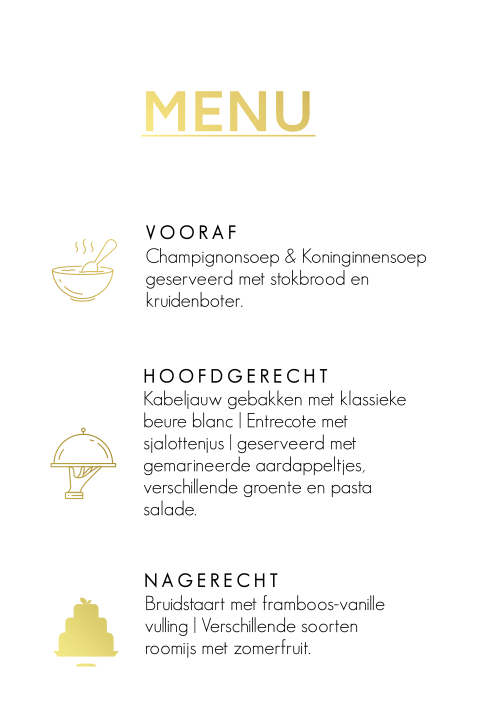 Luxe menukaart met goudfolie icoontjes en tekst