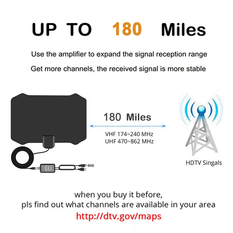 Amazon Com Advanced Technology H Yanka Amplified Hd Digital Tv Antenna Long 120 Miles Range For 4k 1080p Free Uhf Vhf All Order Tv Channels With Detachable Signal Amplifier Average Of 150 Channels 17ft Cable Home Audio